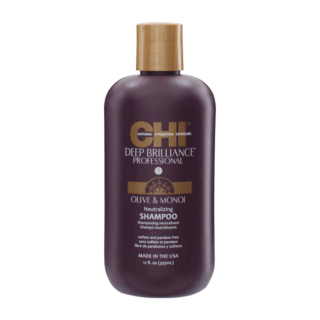 CHI Deep Brilliance Olive & Monoi Neutralizing Shampoo. Restorative cleanser formulated with natural Olive and Monoi Oil botanicals, herbs, and vitamins helps to neutralize and replenish moisture while returning hair to its ideal pH level after a relaxer service.