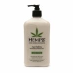 Hempz Age Defying Herbal Body Moisturizer is enriched with 100% Pure Natural Hemp Seed Oil and blended with natural extracts to provide dramatic skin hydration and nourishment to help improve the health and condition of skin. •Advanced anti-aging blend of Polypeptides, Caffeine, and Algae Extract helps reduce the appearance of fine lines and wrinkles, leaving skin looking smoother, firmer and more toned. •Shea Butter, Ginseng and natural extracts help calm, soothe and condition the skin. •Vitamins A, C & E help protect skin from natural and environmentally triggered oxidants. •Enriched with100% Pure Natural Hemp Seed Oil. •THC drug-free. •Fragrance: Vanilla and Musk