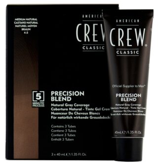 American Crew Precision Blend enables Professionals to provide for their clients with natural grey coverage for hair AND beard. The upgraded formulation works in just five minutes and is infused with vitamin B5 for moisturization.