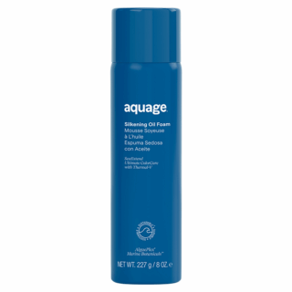 Aquage Silkening Oil Foam is an ultra-light hold oil infused foam that weightlessly smoothes, silkens and controls frizz.