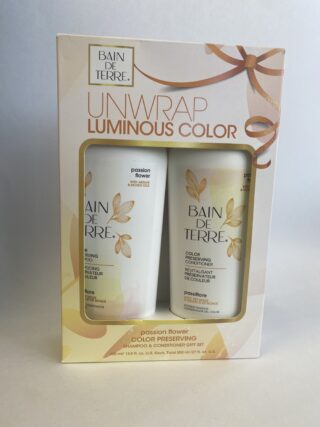 The passion flower color-preserving Gift Set shampoo and conditioner gift set deeply moisturizes and conditions the hair, leaving it soft, vibrant, and shiny.