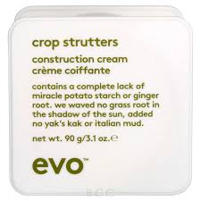 A hair-styling cream with a medium, flexible hold. Create separation, support, and medium shine with Crop Strutters Construction Cream by Evo. Evo Crop Strutters Construction Cream features a water-soluble, cruelty-free formula that offers hair a medium, flexible hold and natural shine. This hair styling cream uses PEG-75 Lanolin to hydrate and nourish, coating it in a film that locks in moisture even when it’s dry. PVP/VA Copolymer adds style support and definition, while Carnauba Wax creates a malleable hold so that hair can be easily re-styled. This construction cream features fruity, melon, floral, sweet, and green fragrance notes, leaving the hair fresh and lightly scented. Crop Strutters can be blended through mid-lengths to ends for greater nourishment on dry hair. * Work between your hands and apply to dry hair.