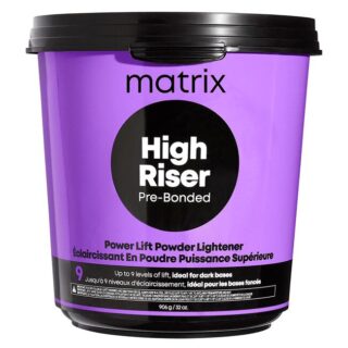 - Mix High Riser with 10, 20, or 30 volume Matrix Cream Developer in a 1:2 (30g powder:60ml developer). Do not use 40 Volumes.