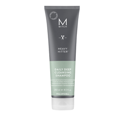 Heavy Hitter Deep Cleansing shampoo washes away dirt and product buildup.