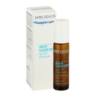 Sans Soucis Aqua Clear Skin Anti-Blemish Stick 5 ml. Anti-Blemish Stick – Reliable “First Aid” for safe, immediate spot treatment of impure skin. Zinc oxide has a mildly astringent and slightly tingl effect, while isopropyl alcohol and anti-bacterial agents disinfect and quickly clear up pimples and other skin blemishes. The ideal complement to the rest of the Clear Skin line.